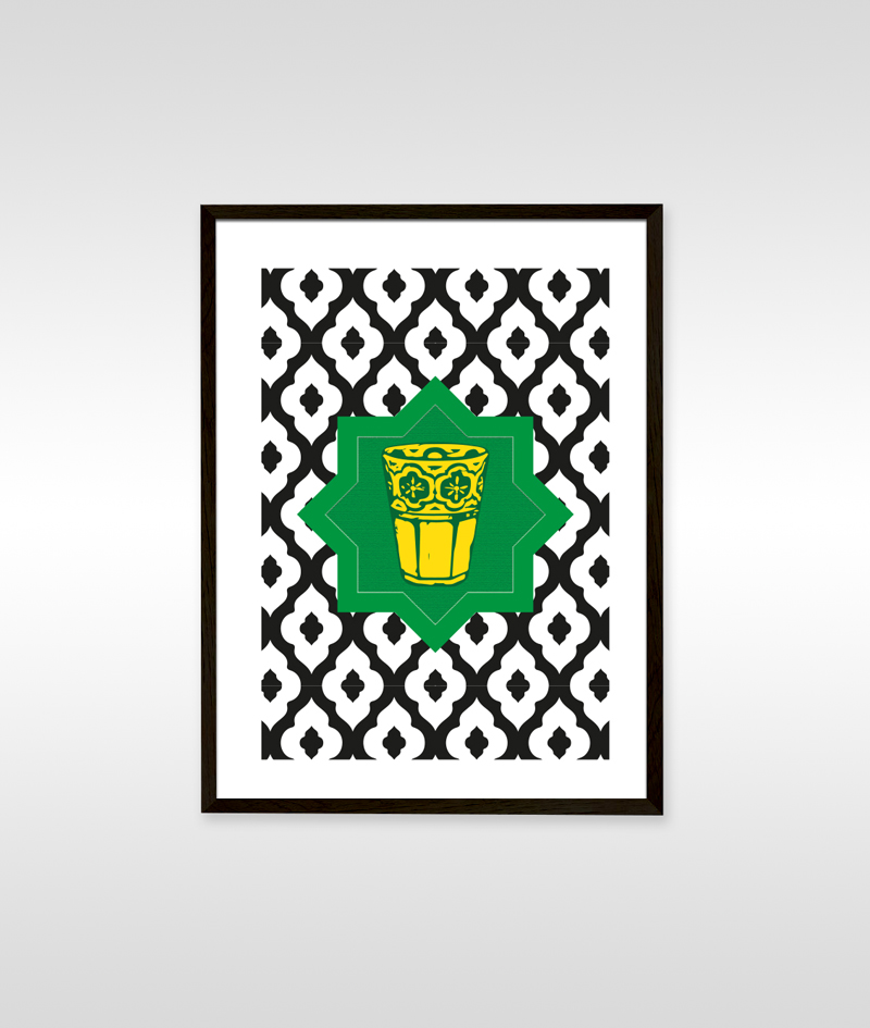 À travers ses couleurs franches et son graphisme épuré, ce tableau saisit l’essence d’un rituel social intemporel, où chaque verre partagé renforce les liens et célèbre la convivialité.